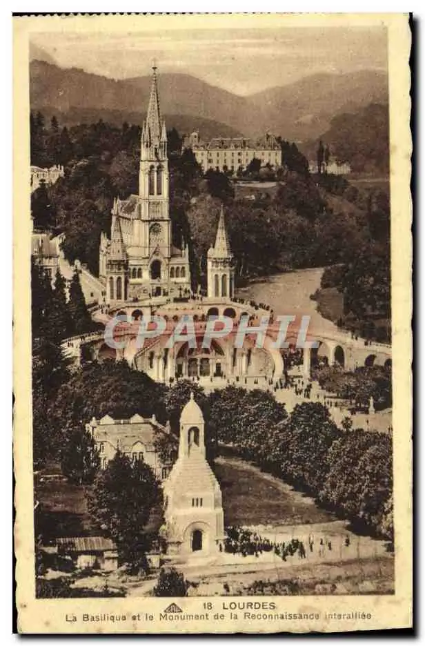 Cartes postales Lourdes La basilique et le monument de la reconnaissance interalliee