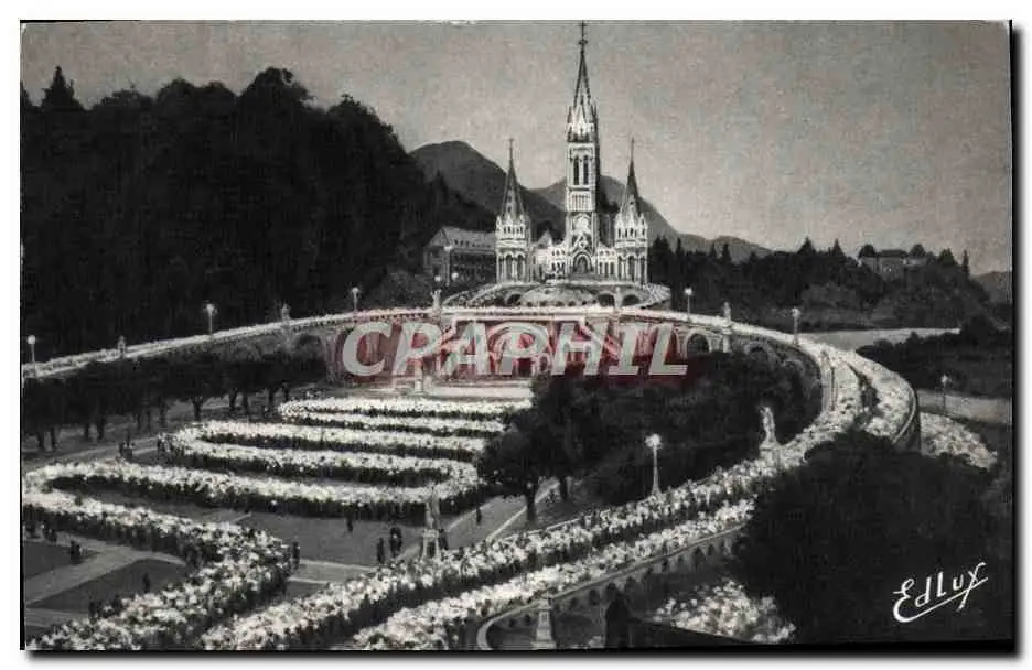 Cartes postales Lourdes La basilique illuminee et la procession aux flambeaux