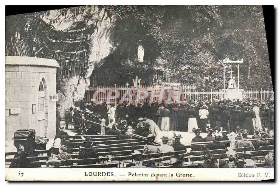 Cartes postales Lourdes Pelerins Devant la Grotte