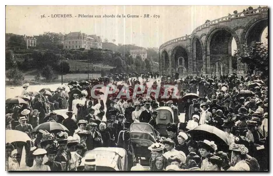 Cartes postales Lourdes Pelerins aux abords de la Grotte