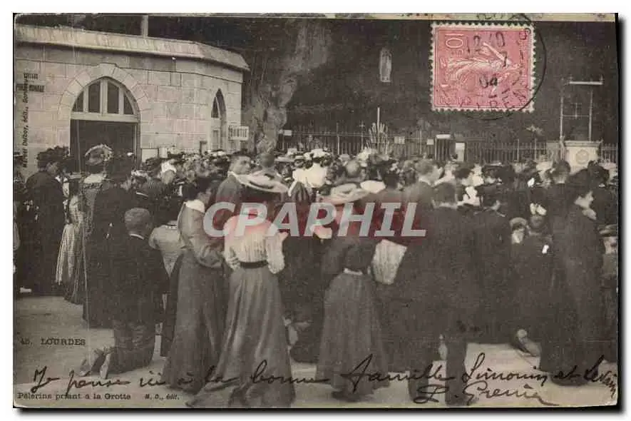 Cartes postales Lourdes Pelerins peiant a la Grotte