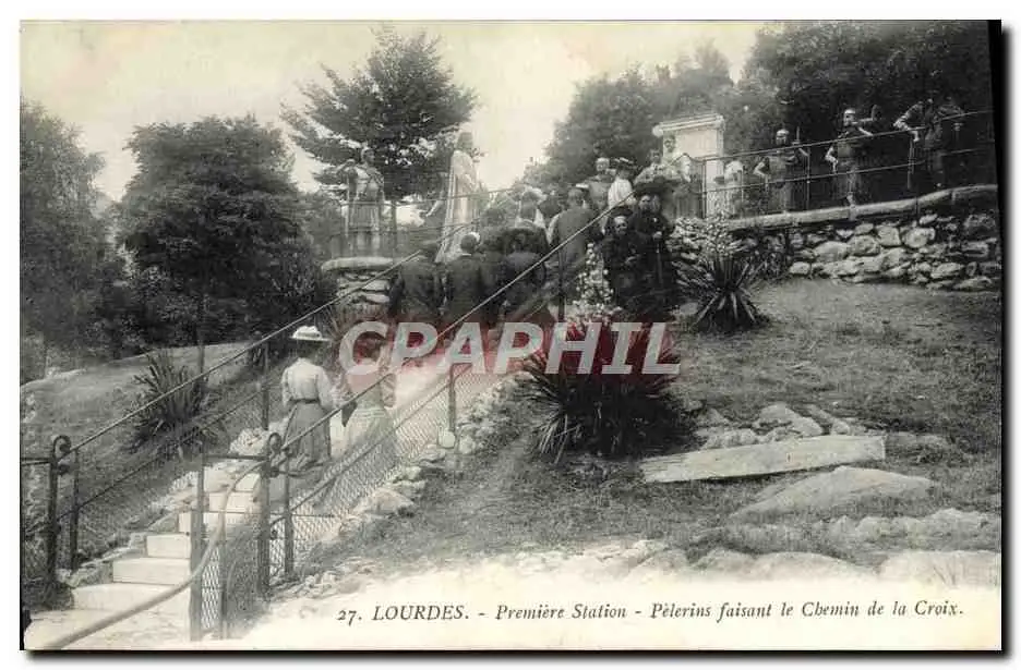 Cartes postales Lourdes Premiere Station Pelerins Faisant le Chemin de la Croix