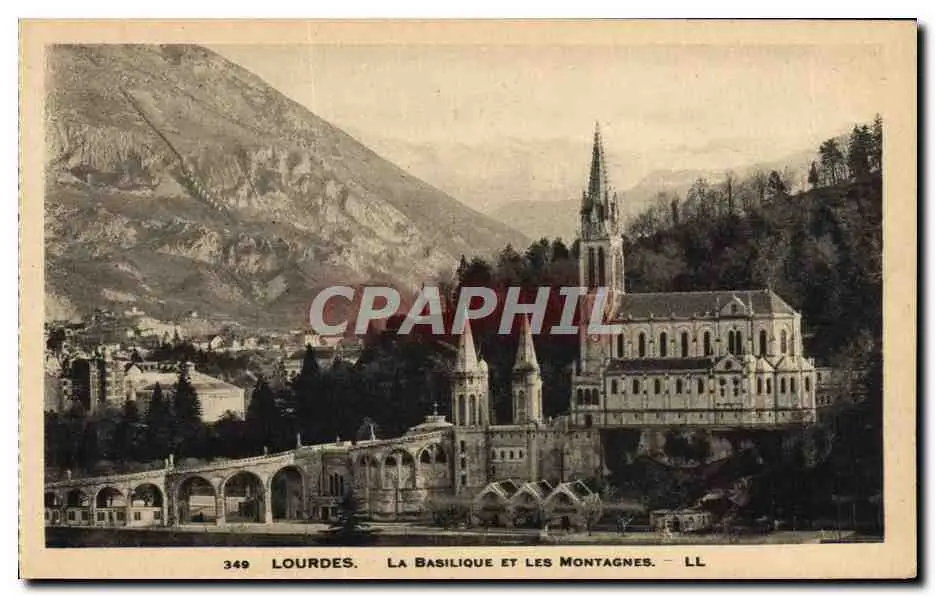 Cartes postales Lourdes Vue Generale La Basilique Et Les montagnes