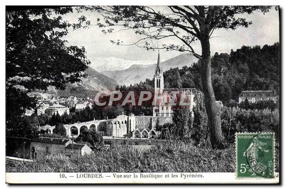 Cartes postales Lourdes Vue sur la Basilique et les Pyrenees