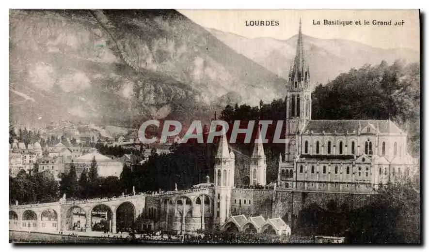 Cartes postales Lourdes la Basilique et le Grand Jet