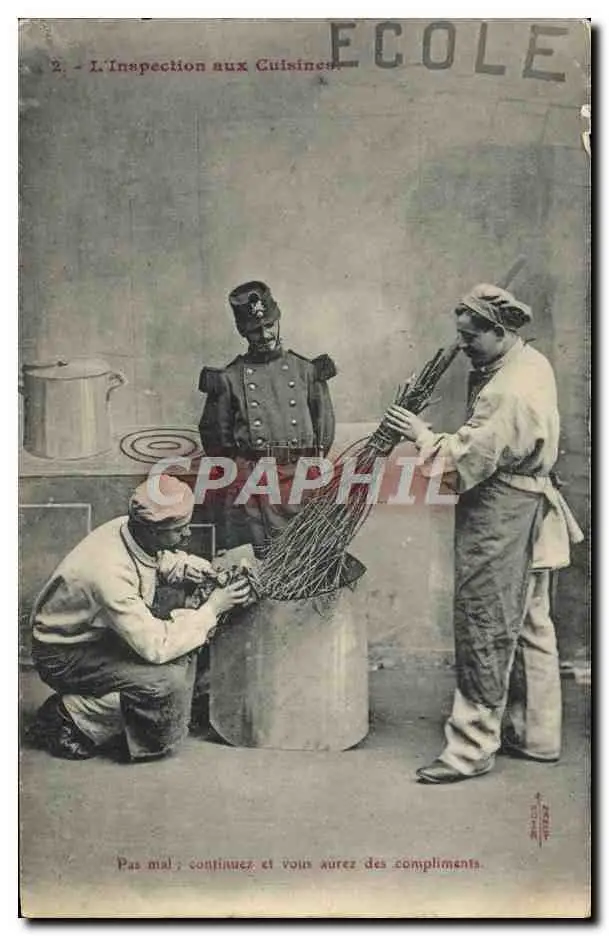 Cartes postales L&#39Inspection Aux Cuisines Ecole Militaria