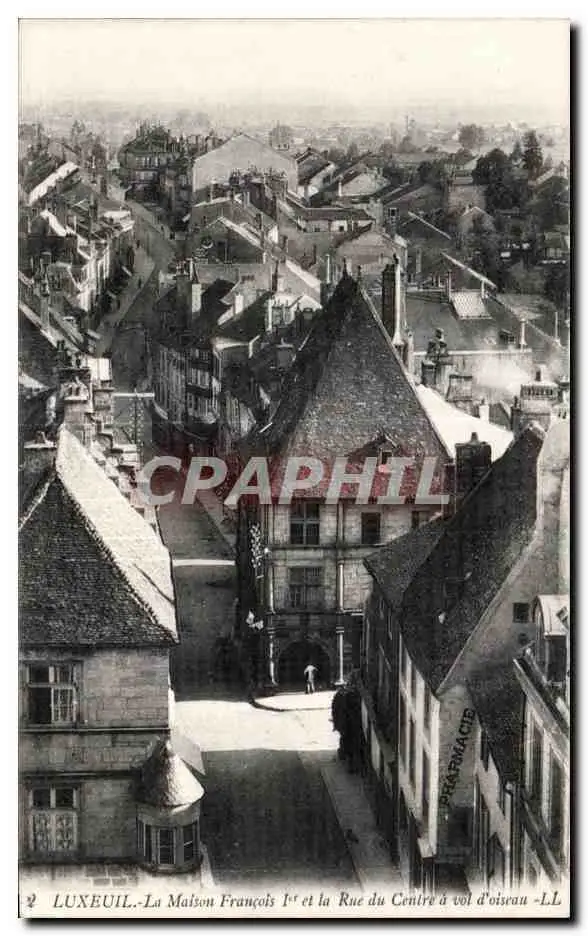 Cartes postales Luxeuil La Maison Francois ler et la Rue du Centre a Vol d oiseau