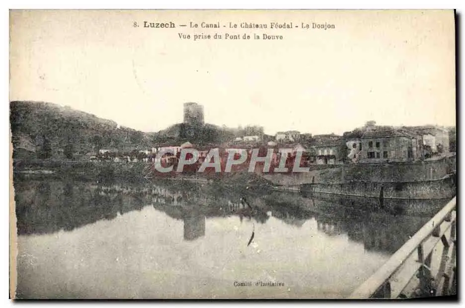 Cartes postales Luzech Le Canal le Chateau Feodal Le donjon Vue prise du pont de la Douve