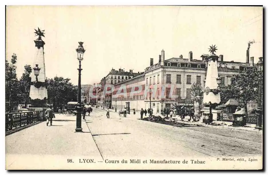 Cartes postales Lyon Cours du Midi et manufacture de tabac