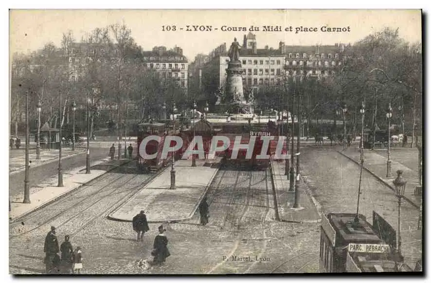 Cartes postales Lyon Cours du Midi et place Carnot Tramways
