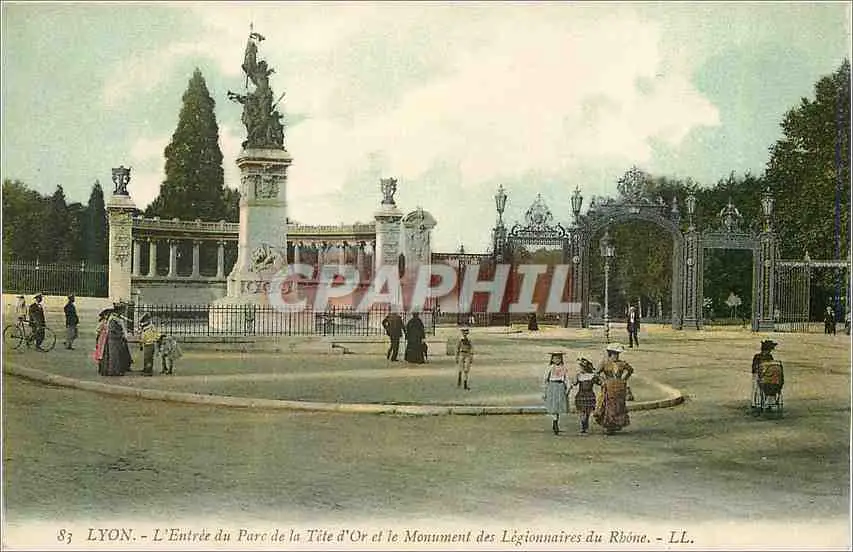 Cartes postales Lyon L'Entree du Parc de la Tete d'Or et le Monument des Legionnaires du Rhone