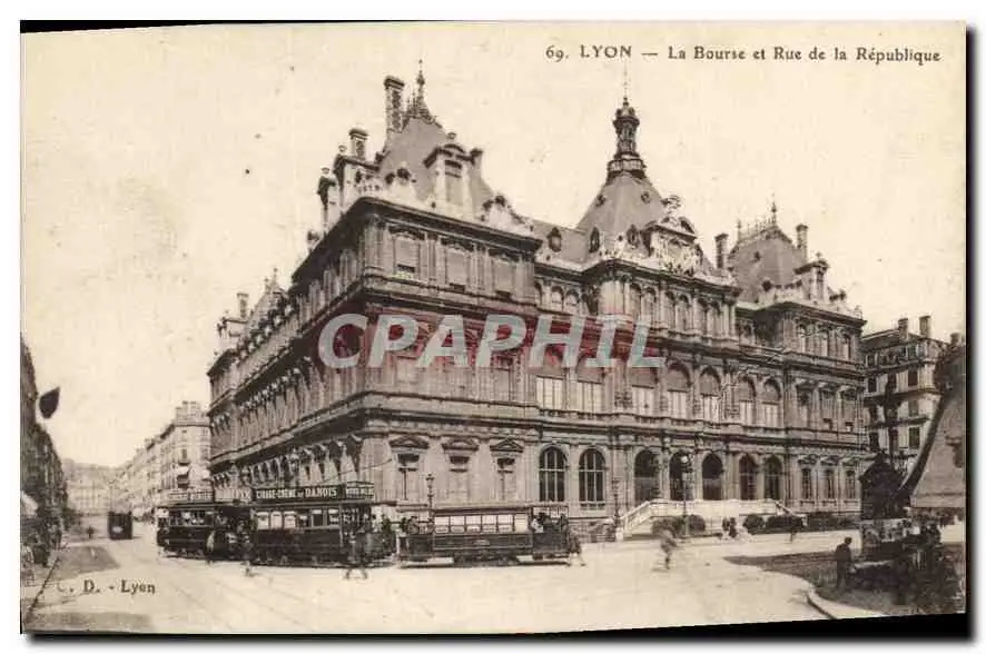 Cartes postales Lyon La Bourse et Rue de la Republique Tramways