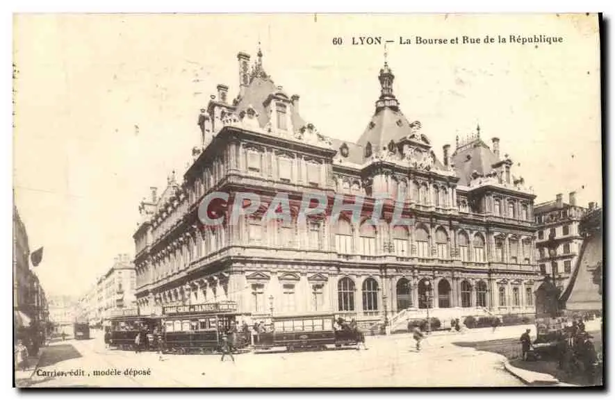 Cartes postales Lyon La Bourse et Rue de la Republique Tramways