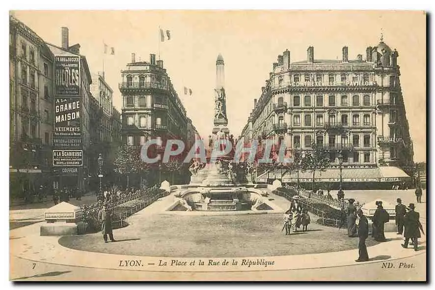 Cartes postales Lyon La Place et la Rue de la Republique