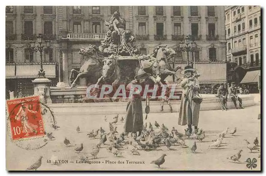 Cartes postales Lyon Les Pigeons Place des Terreaux