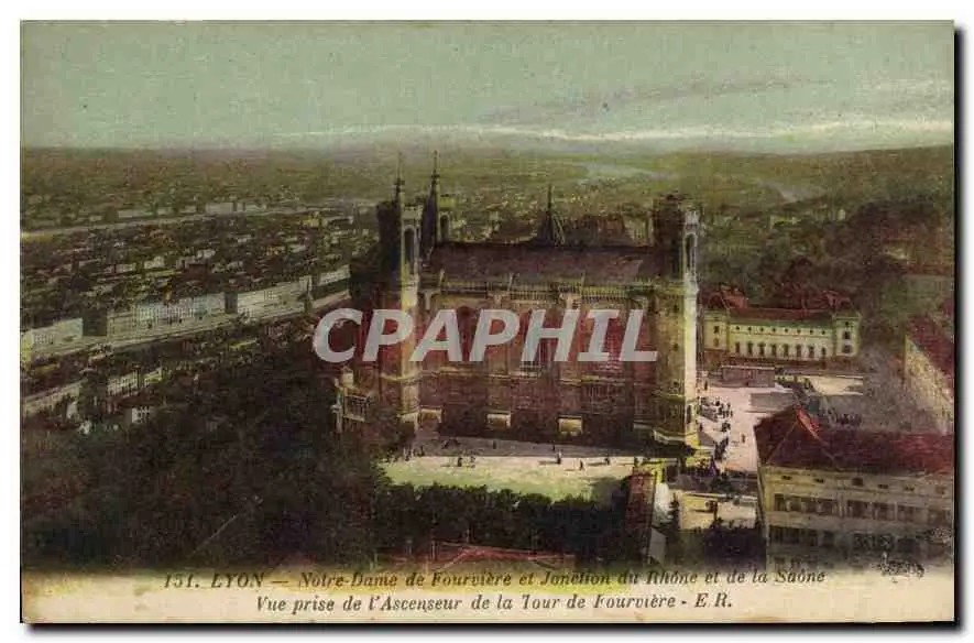 Cartes postales Lyon Notre Dame de Fourviere et Jancin du Rhone et de la Saone Vue prise de l'Assenseur
