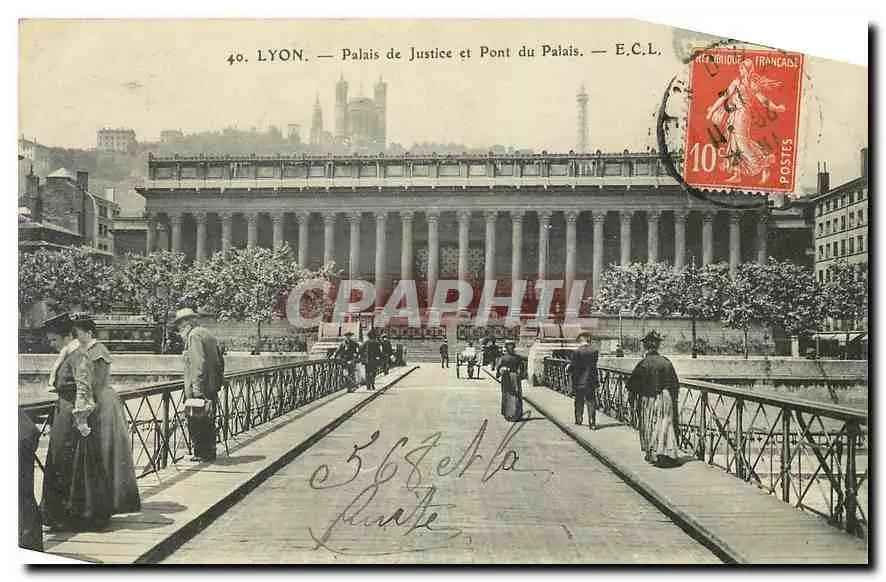 Cartes postales Lyon Palais de Justice et Pont du Palais