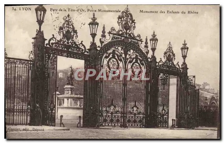 Cartes postales Lyon Parc de la Tete d'Or Porte monumentale Monument des enfants du Rhone