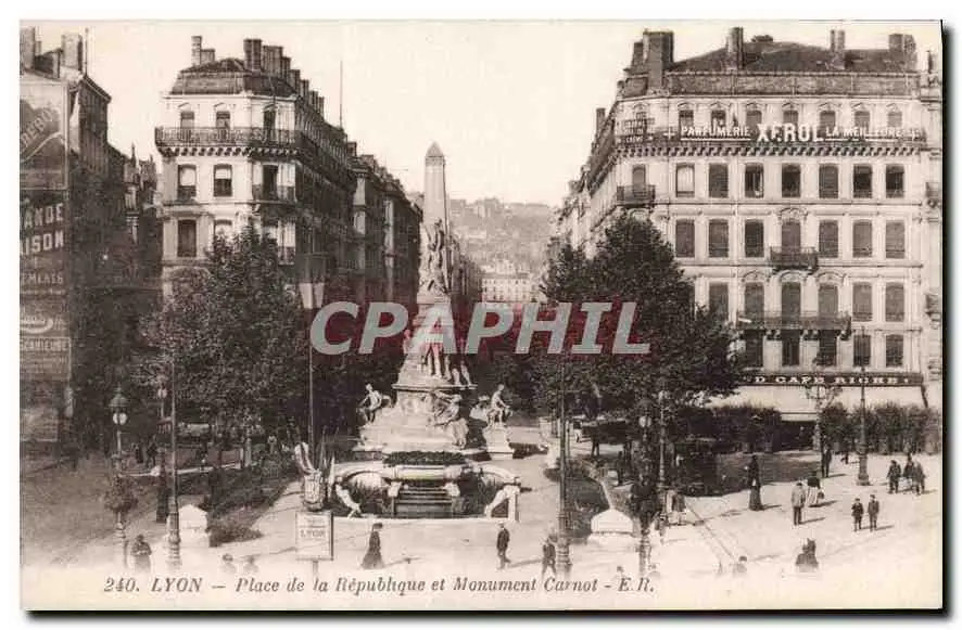 Cartes postales Lyon Place de la Republique et Monument Carnot