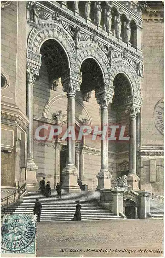 Cartes postales Lyon - Portail de la basilique de Fourvi�re