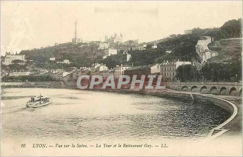 Cartes postales Lyon Vue sur la Saone La Tour et le Restaurant Gay