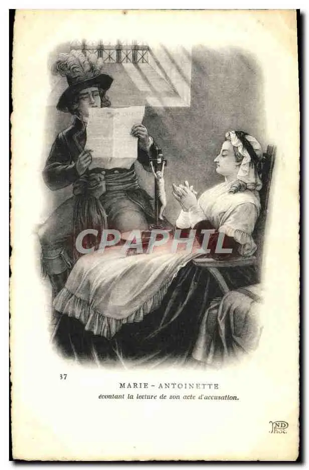 Cartes postales Marie Antoinette ecoutant la lecture de son acte d&#39accusation Prison
