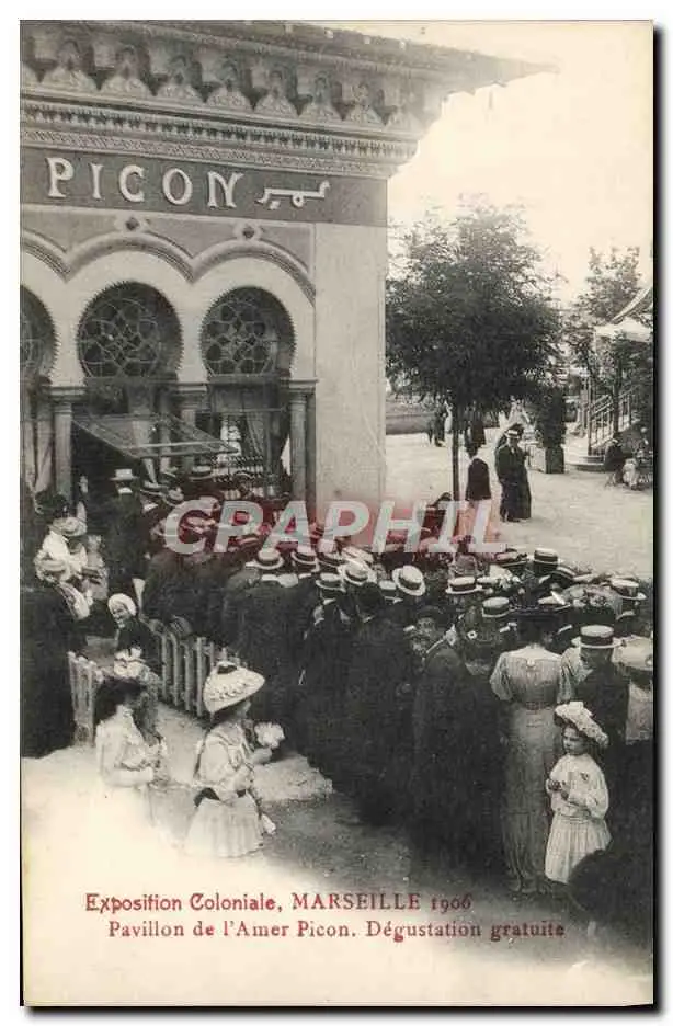 Cartes postales Marseille Exposition coloniale 1906 Pavillon de l&#39Amer Picon Degustation gratuite
