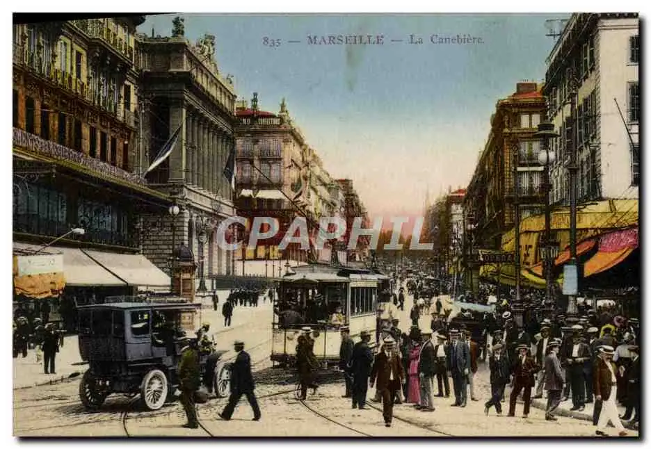 Cartes postales Marseille La Canebiere Automobile Tramway