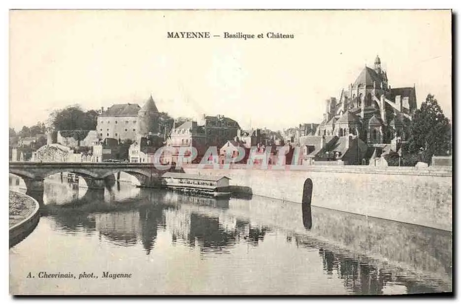 Cartes postales Mayenne Basilique et Chateau Lavoir