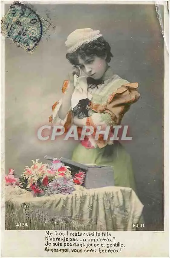 Cartes postales Me Faut il Rester Vieille Fille N'aurai je pas un Amoureux Je suis pourtant Jeune et Gentille