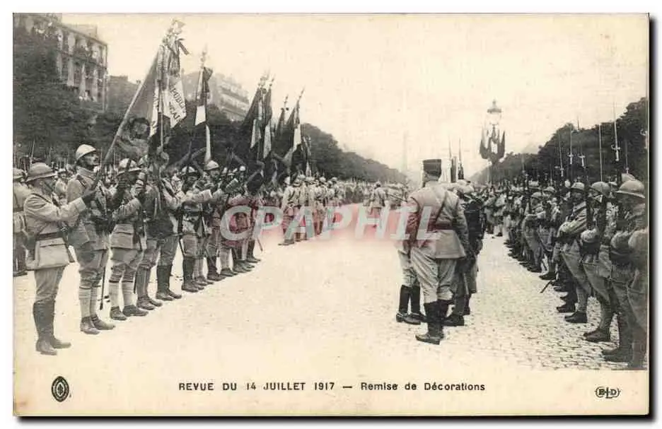 Cartes postales Medaille Revue du 14 juillet 1917 Remise de decorations