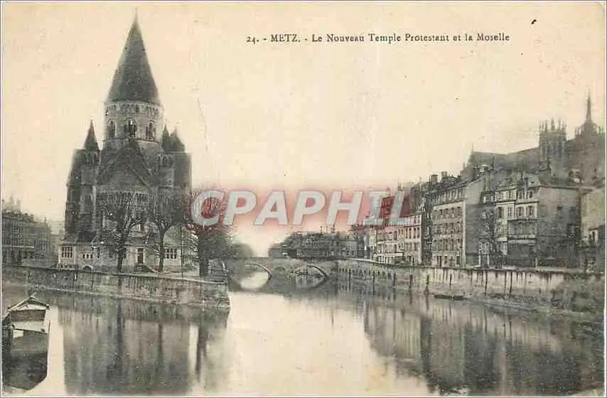 Cartes postales Metz Le Nouveau Temple Protestant et la Moselle