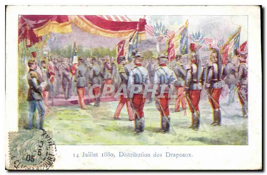 Cartes postales Militaria 14 Juillet 1880 Distribution des Drapeaux