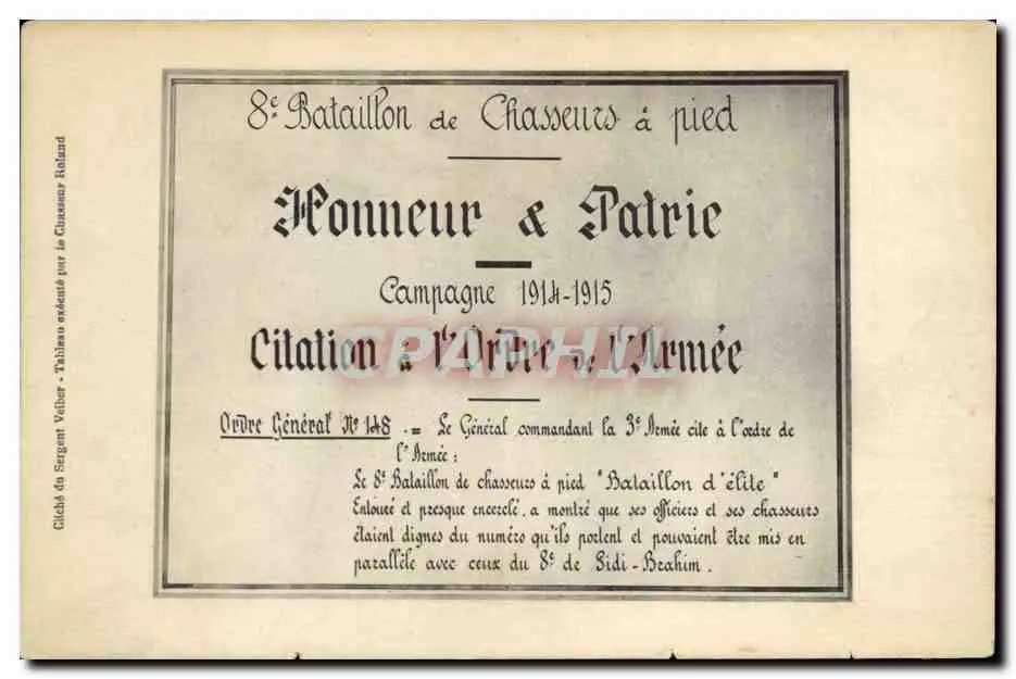 Cartes postales Militaria 8eme bataillon de chasseurs a pied Honneur & Patrie Citation a l&#39ordre de l&#39arme