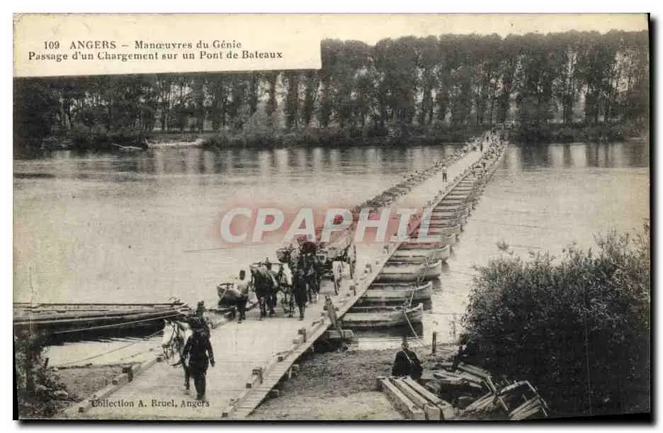 Cartes postales Militaria Angers Manoeuvres du Genie Passage d&#39un chargement sur un pont de bateaux