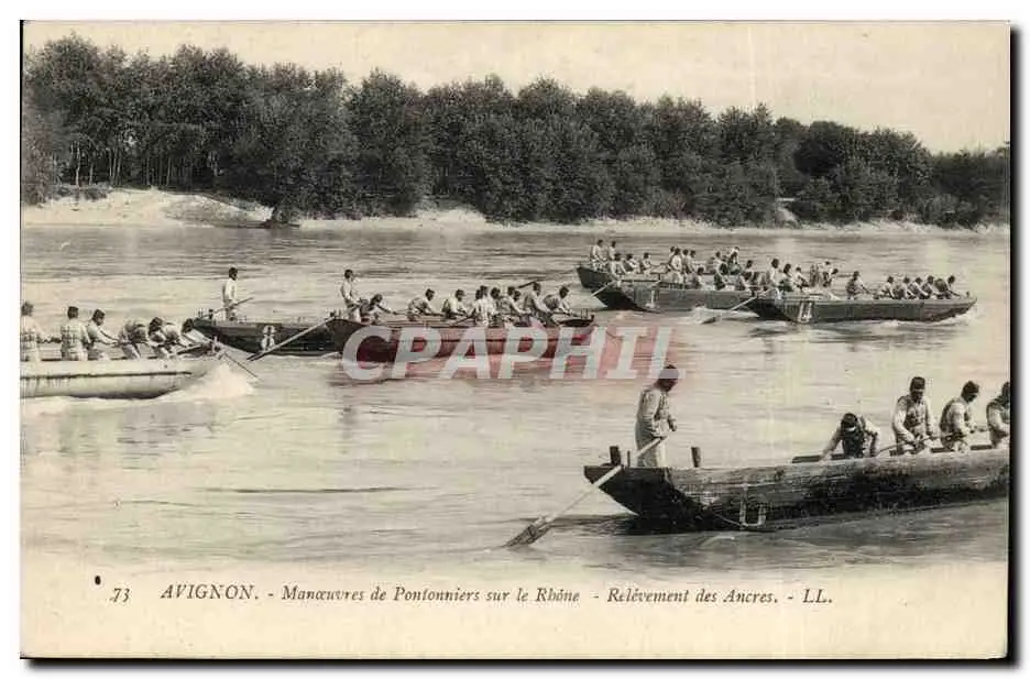 Cartes postales Militaria Avignon Manoeuvres de pontonniers sur le Rhone Relevement des ancres