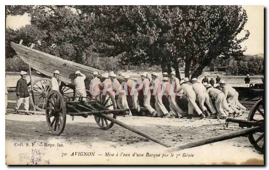 Cartes postales Militaria Avignon Mise a l'eau d'une barque par le 7eme Genie