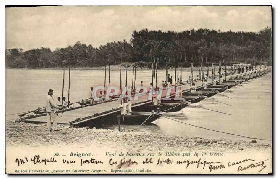 Cartes postales Militaria Avignon Pont de bateaux sur le Rhone par le 7eme Genie