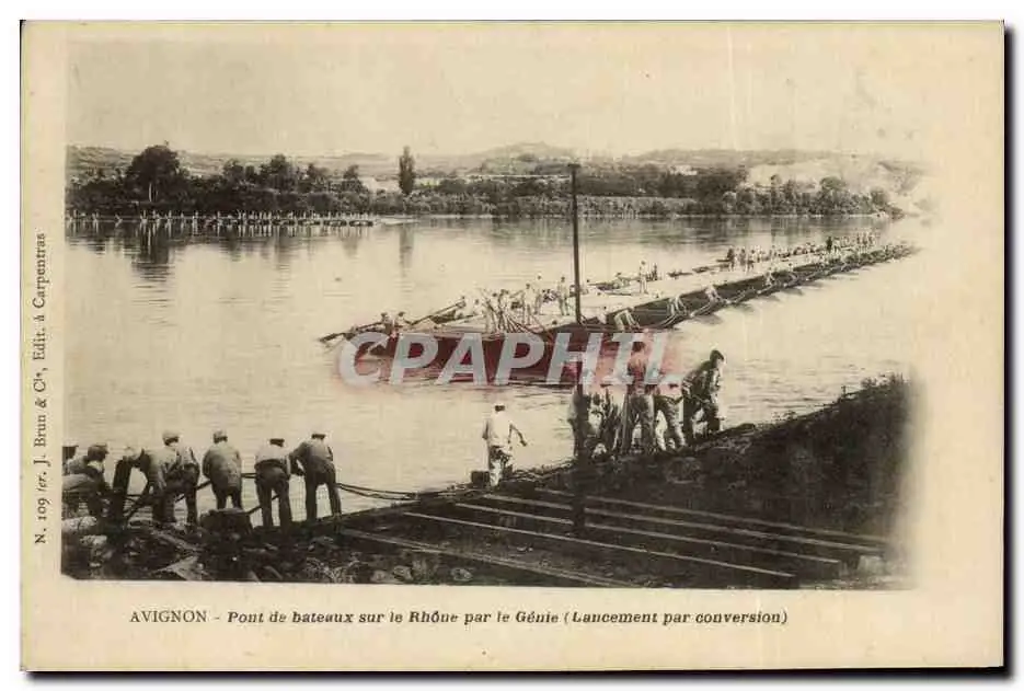 Cartes postales Militaria Avignon Pont de bateaux sur le Rhone par le Genie Lancement par conversion
