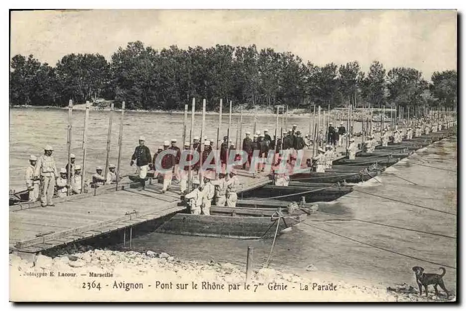 Cartes postales Militaria Avignon Pont sur le Rhone par le 7eme Genie La parade