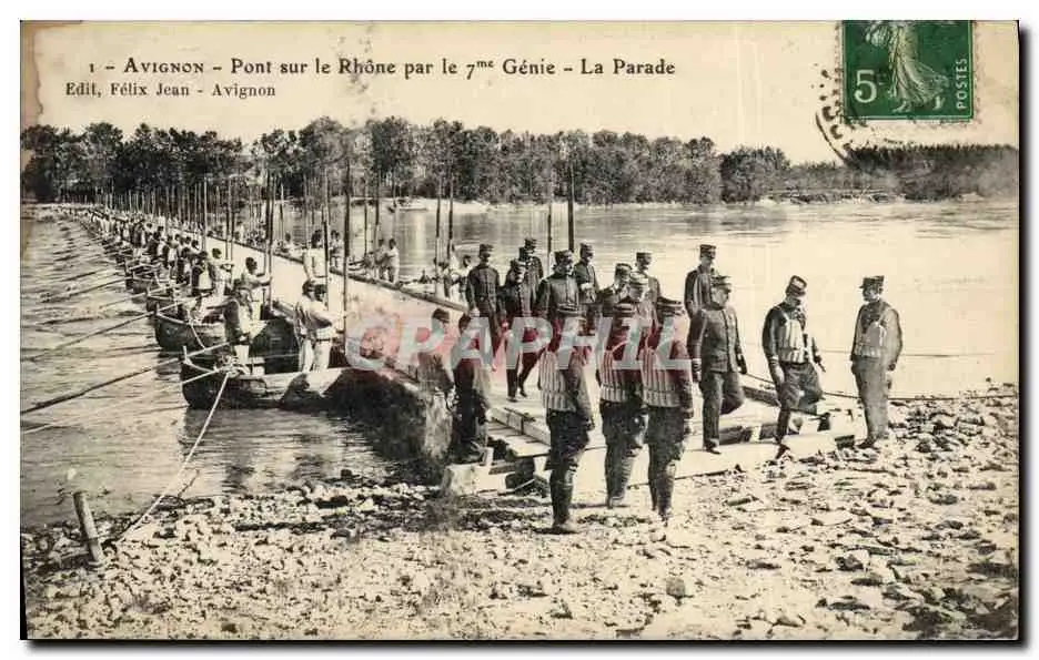 Cartes postales Militaria Avignon Pont sur le Rhone par le 7eme Genie La parade