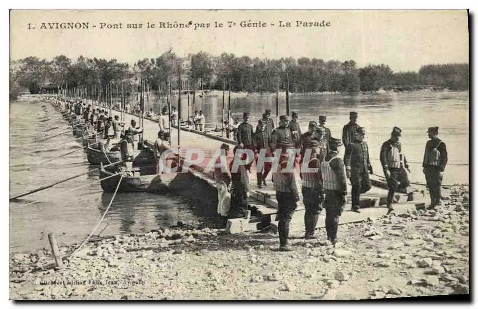 Cartes postales Militaria Avignon Pont sur le Rhone par le 7eme Genie La parade