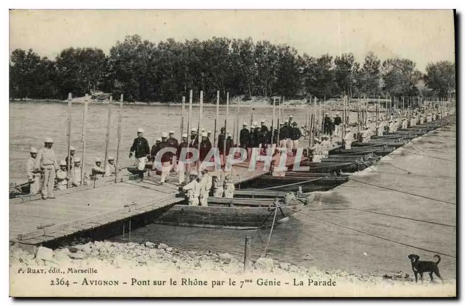 Cartes postales Militaria Avignon Pont sur le Rhone par le 7eme Genie La parade
