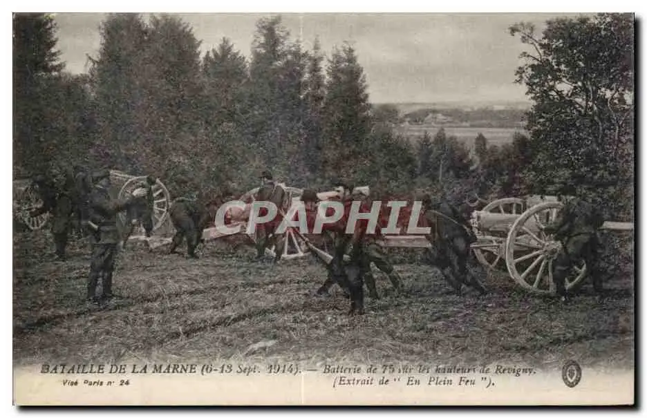 Cartes postales Militaria Bataille de la Marne Batterie de 75 Revigny Canons