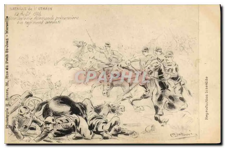 Cartes postales Militaria Bataille de l'Othain 12 aout 1914 Une batterie allemande prisonniere Un regiment an