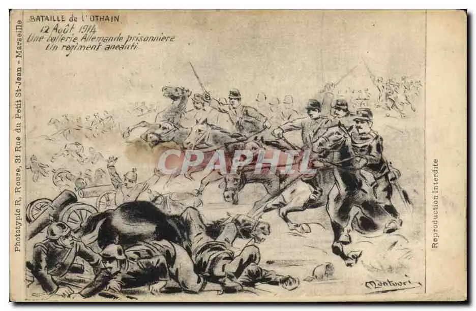 Cartes postales Militaria Bataille de l'Uthain 12 aout 1914 Une batterie allemande prisonniere