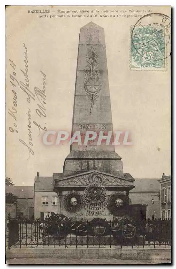 Cartes postales Militaria Bazeilles Monument eleve a la memoire des combattants morts pendant la bataille du 31
