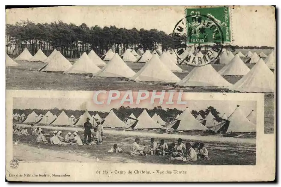 Cartes postales Militaria Camp de Chalons Vue des tentes