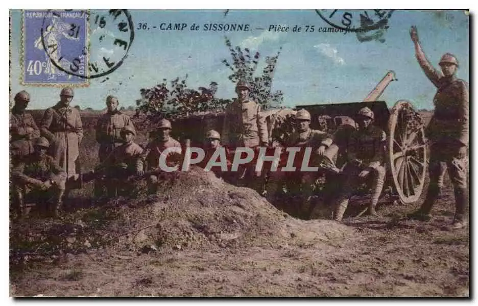 Cartes postales Militaria Camp de Sissonne Piece de 75 camouflee