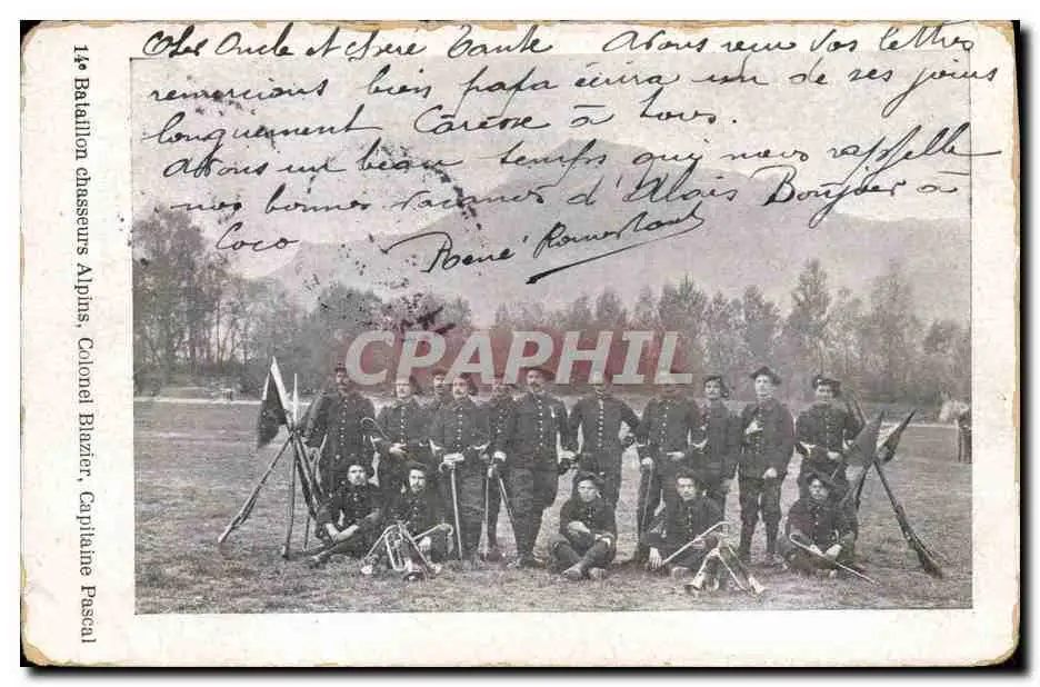 Cartes postales Militaria Chasseurs Alpins 14eme bataillon chasseurs alpins Colonel Blazier Capitaine Pascal